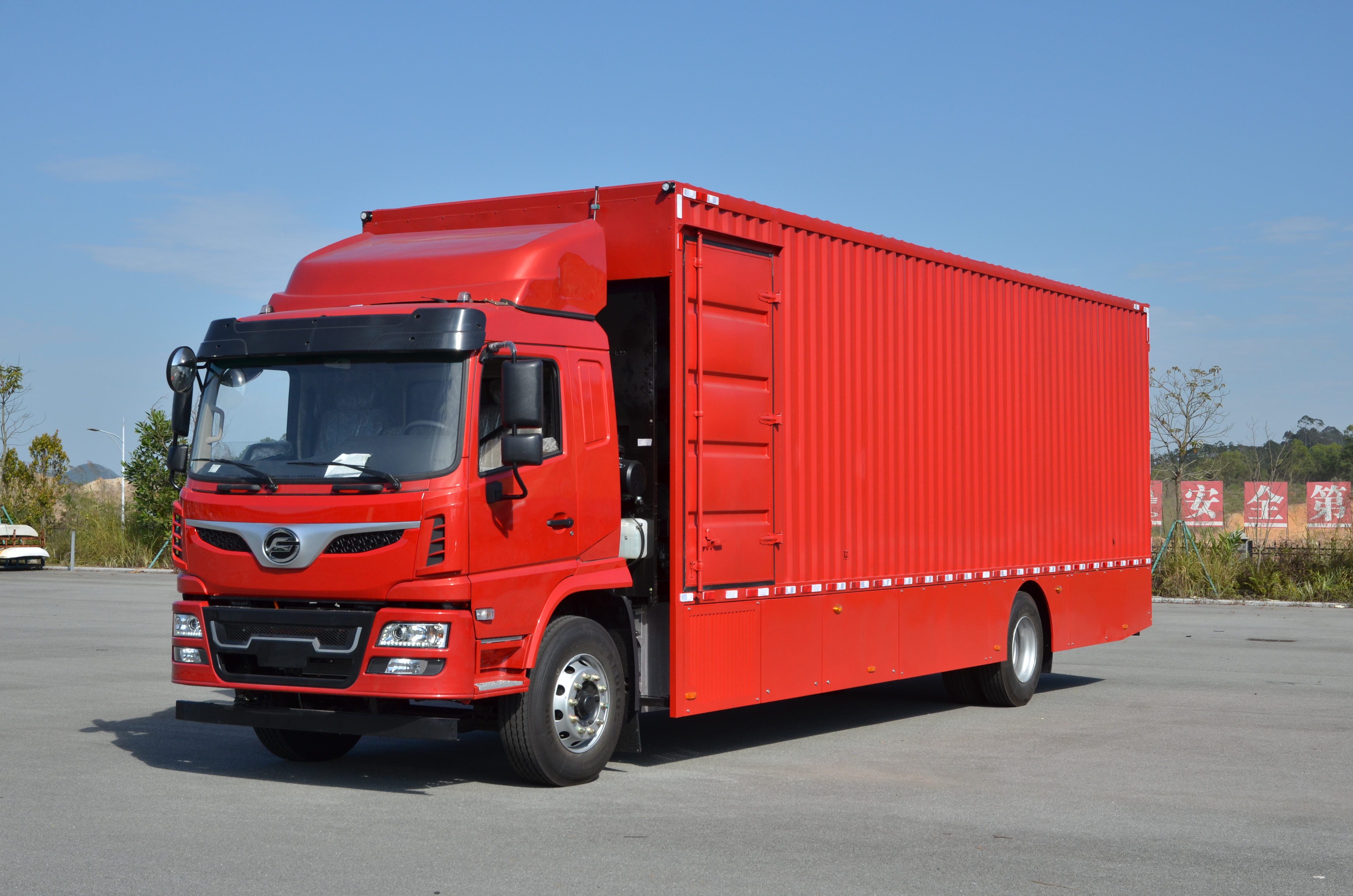 搭载110KW大功率氢燃料发动机和永磁同步电机+4挡ATM変速箱,为车辆的动力系统输送源源不断的动力。同时,可配合车厢侧开门设计功能,提高车辆卸运的便利性,在凸显节能环保的同时提高车辆的运营效率。